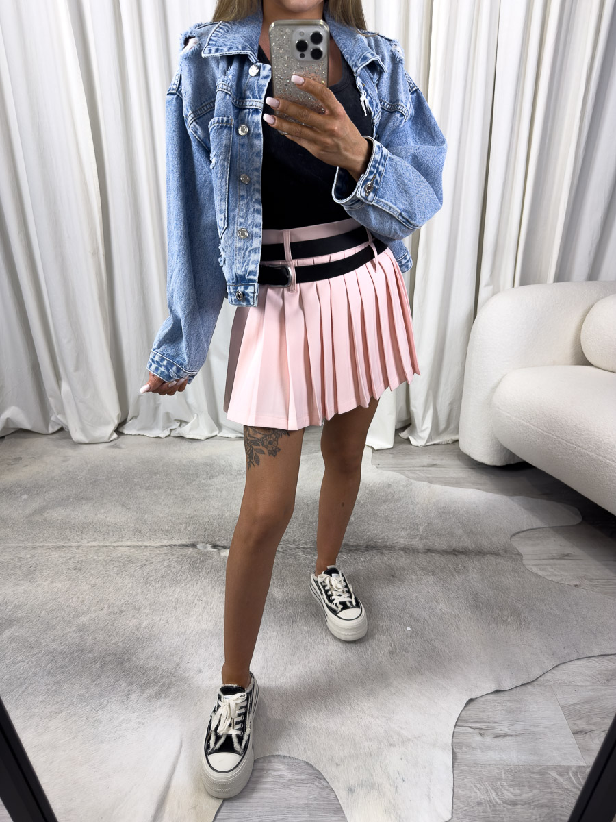 Spódnico-spodenki plisowane Studio – różowa plisowana miniówka z wygodą szortów