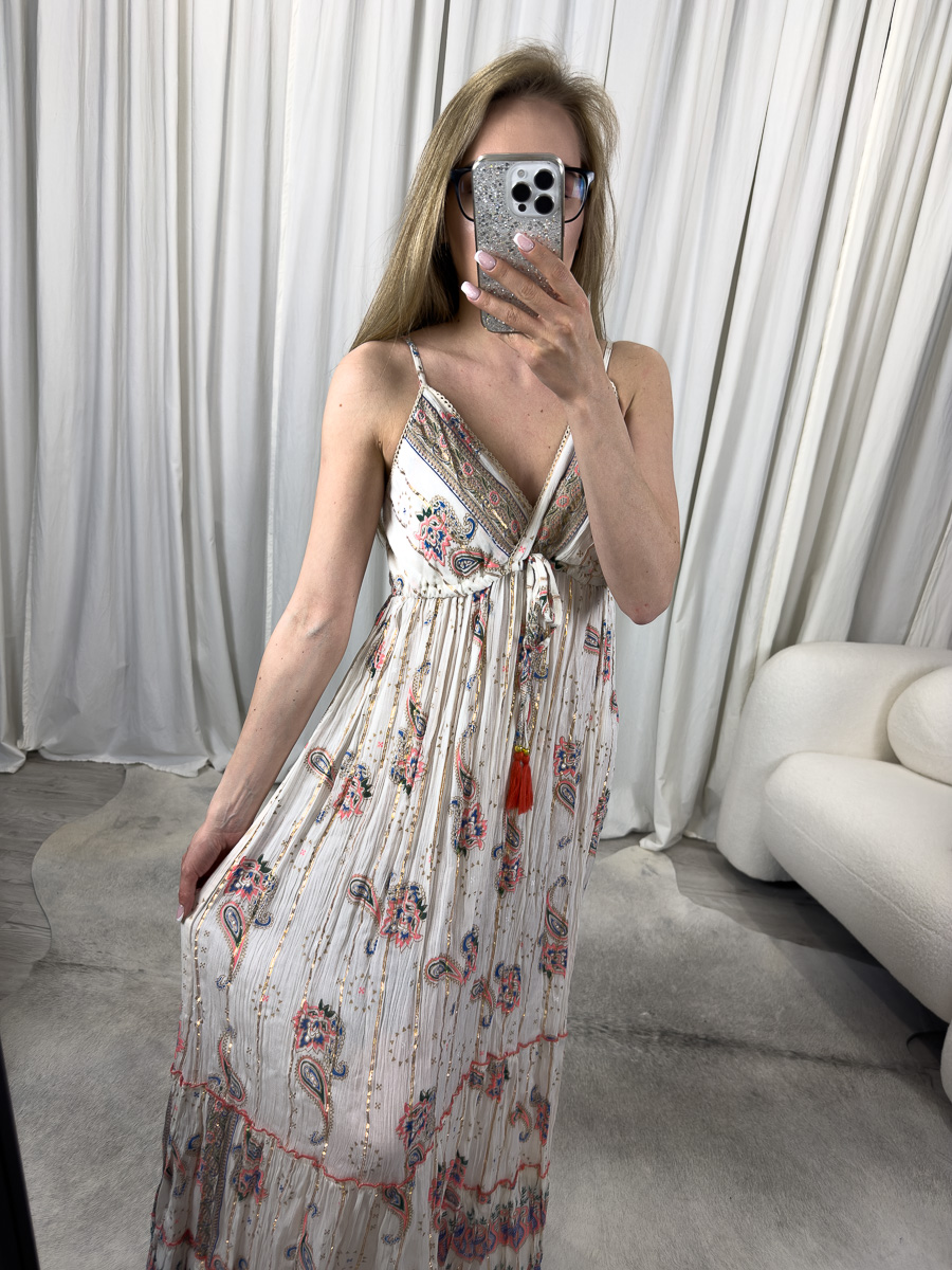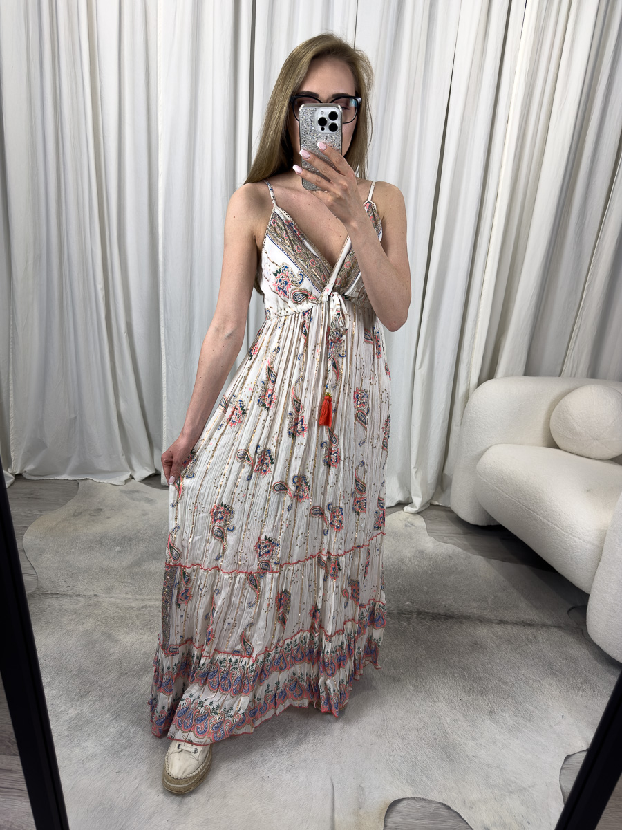 Długa sukienka na cienkich ramiączkach z paisley printem