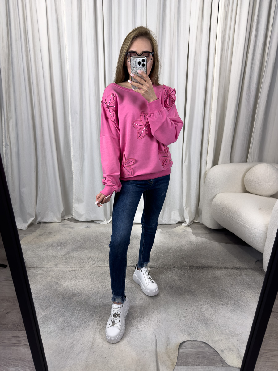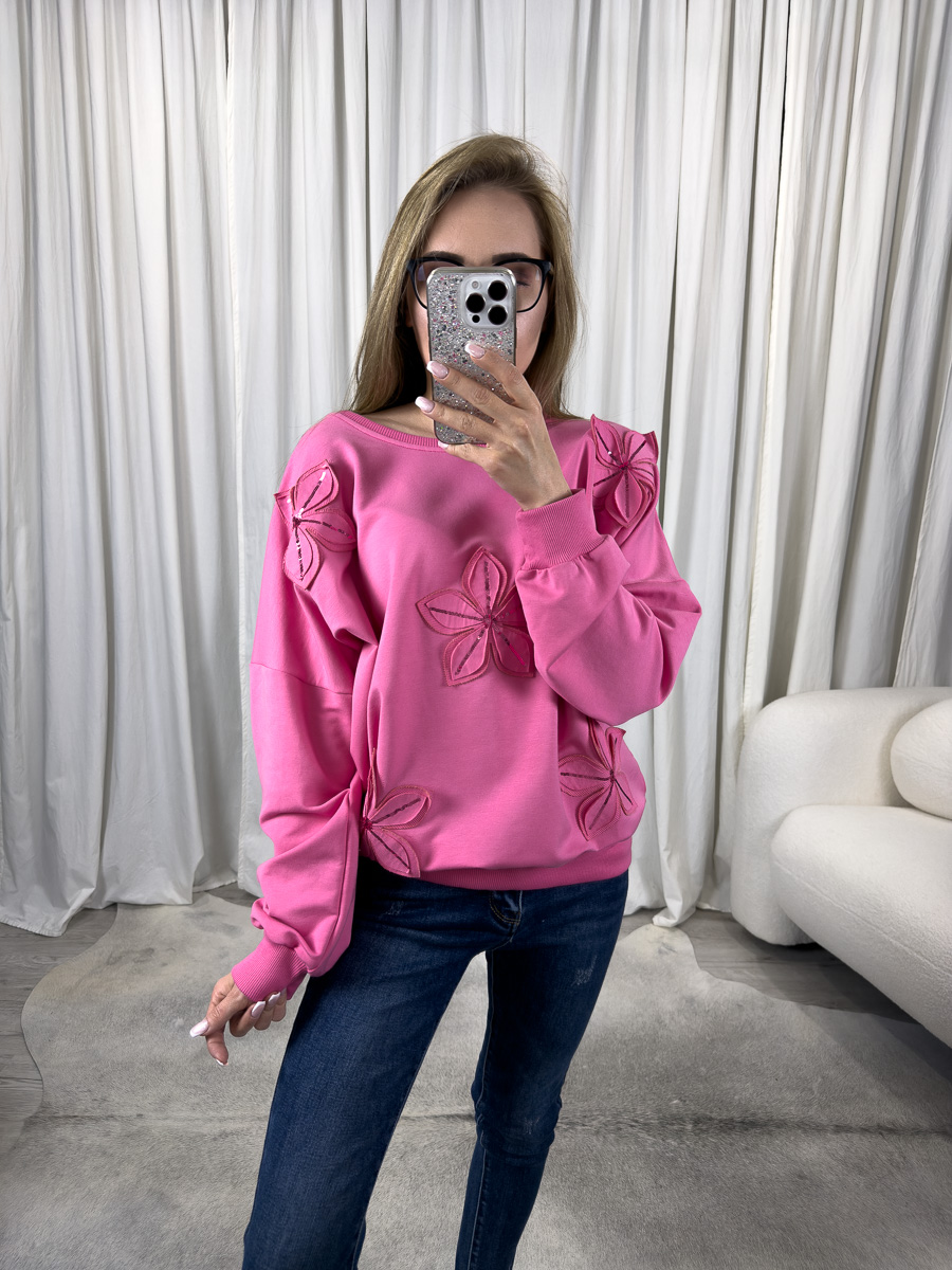 Szukasz stylowej bluzy, która wyróżni Twoje stylizacje, ale też zapewni komfort każdego dnia? Bluza Rosalia w kolorze intensywnej fuksji to propozycja, obok której trudno przejść obojętnie. Charakterystyczne haftowane kwiaty 3D rozmieszczone na rękawach i froncie bluzy dodają jej unikalnego charakteru i sprawiają, że całość prezentuje się bardzo kobieco, ale z pazurem.