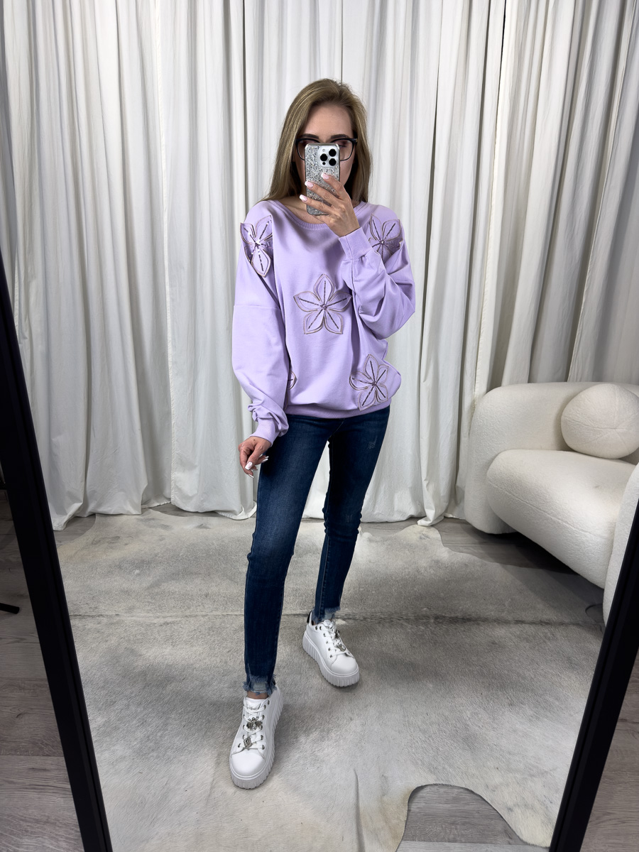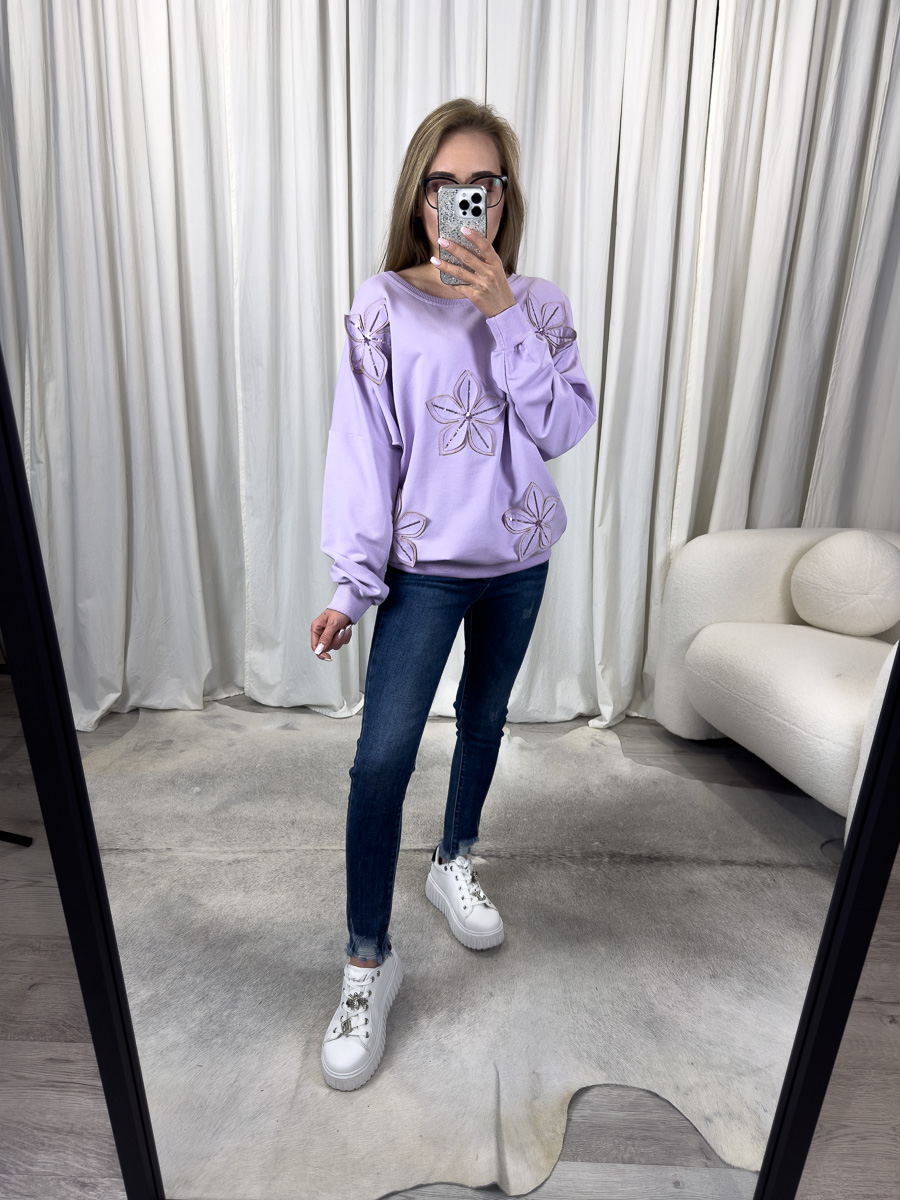 Bluza Rosalie liliowa to połączenie wygody, modnego kroju i romantycznych akcentów. Hafty w formie kwiatów, rozmieszczone z przodu oraz na rękawach, nadają jej unikalny, dekoracyjny charakter. Kolor liliowy idealnie wpisuje się w trendy pastelowe, które królują w sezonie wiosna-lato. Model przyciąga uwagę detalami, a jednocześnie jest uniwersalny – sprawdzi się zarówno w codziennych stylizacjach, jak i podczas luźniejszych spotkań towarzyskich.