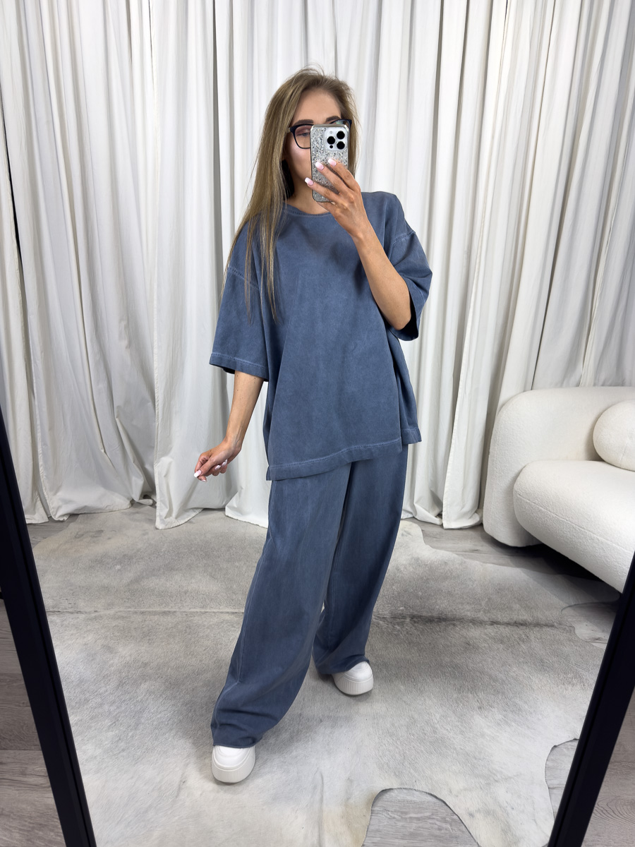 Komplet wyróżnia się prostotą formy, którą podkreślają subtelne detale – minimalistyczny krój, staranne wykończenie oraz wysokiej jakości materiał. W połączeniu z modnymi sneakersami lub klasycznymi botkami zestaw zyskuje nowoczesny, nonszalancki charakter.