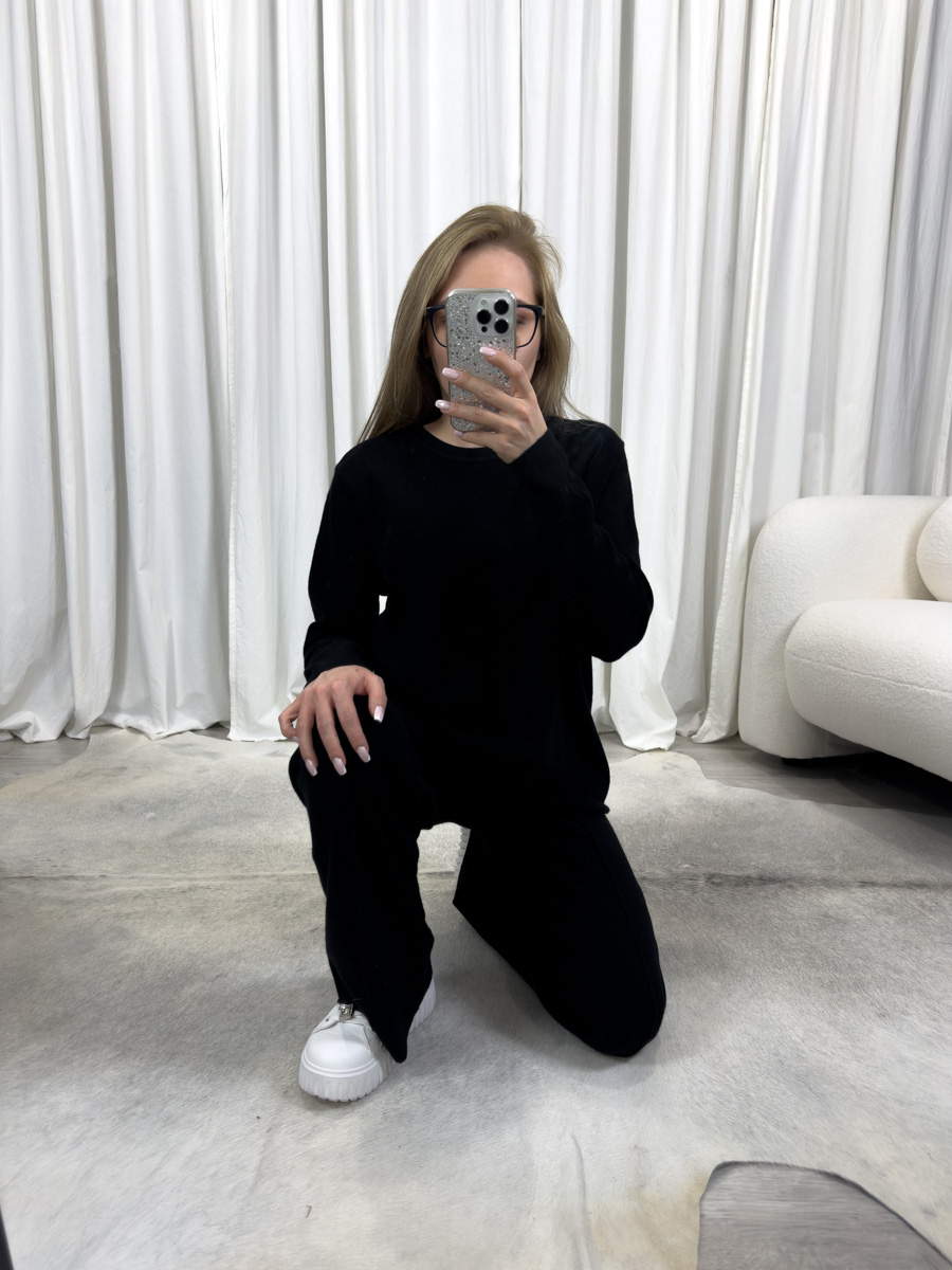 Czarny komplet dzianinowy Comfy – stylowa elegancja w codziennym wydaniu