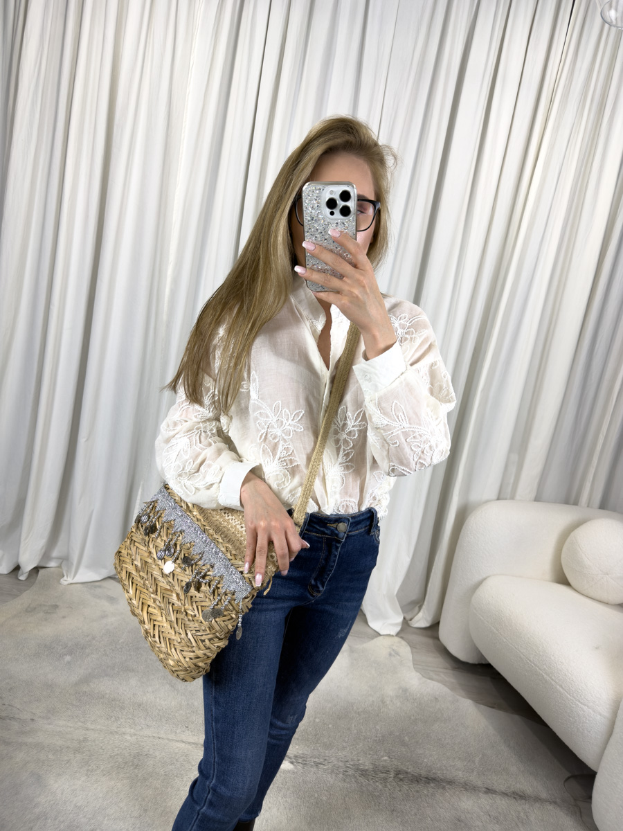 Koszula haftowana Roses świetnie wygląda w połączeniu z klasycznymi jeansami, co pozwala stworzyć stylizację na co dzień. Jeżeli chcesz uzyskać bardziej oficjalny look, zestaw ją z materiałowymi spodniami lub spódnicą ołówkową. Wystarczy dobrać subtelne dodatki oraz eleganckie buty, aby podkreślić jej romantyczny charakter. W ten sposób koszula Roses sprawdzi się również podczas przyjęć, kolacji czy spotkań biznesowych.