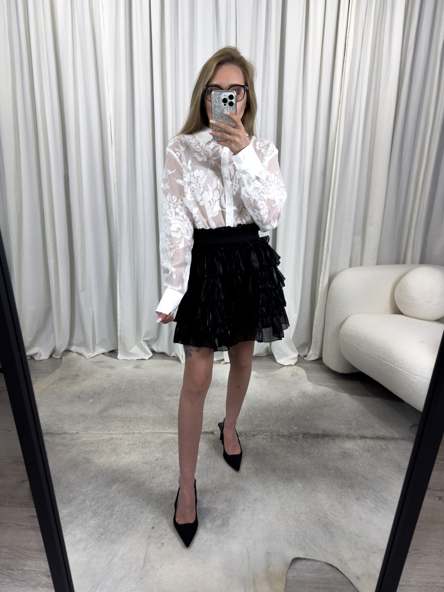 Model ten świetnie prezentuje się w zestawieniu z dopasowanymi spodniami z wysokim stanem, ołówkową spódnicą czy satynowymi szortami. Możesz także założyć ją pod marynarkę, co nada całości bardziej formalnego charakteru. Z kolei w stylizacjach wieczorowych możesz wyeksponować jej transparentność, zestawiając ją z koronkowym topem lub eleganckim body.