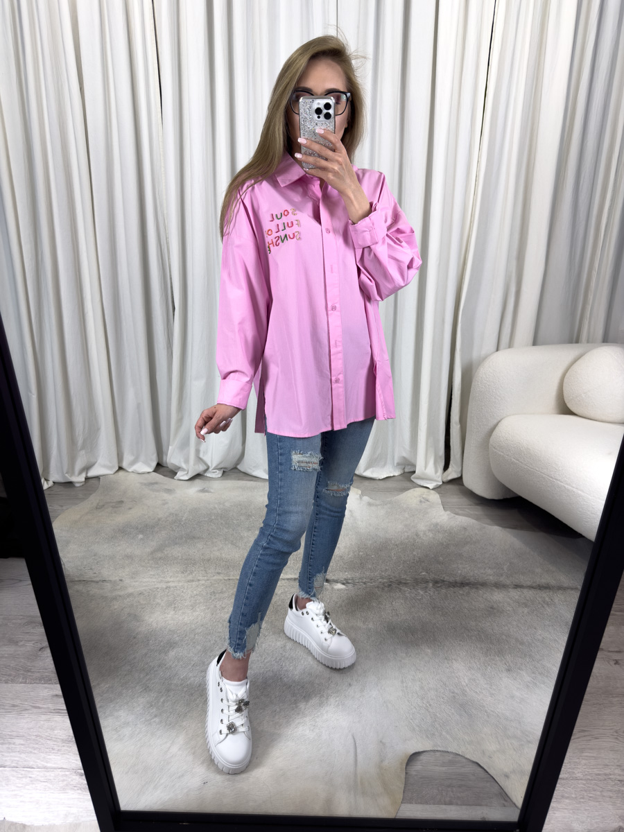 Różowa koszula popelinowa Sunshine Wiya – róż z przesłaniem