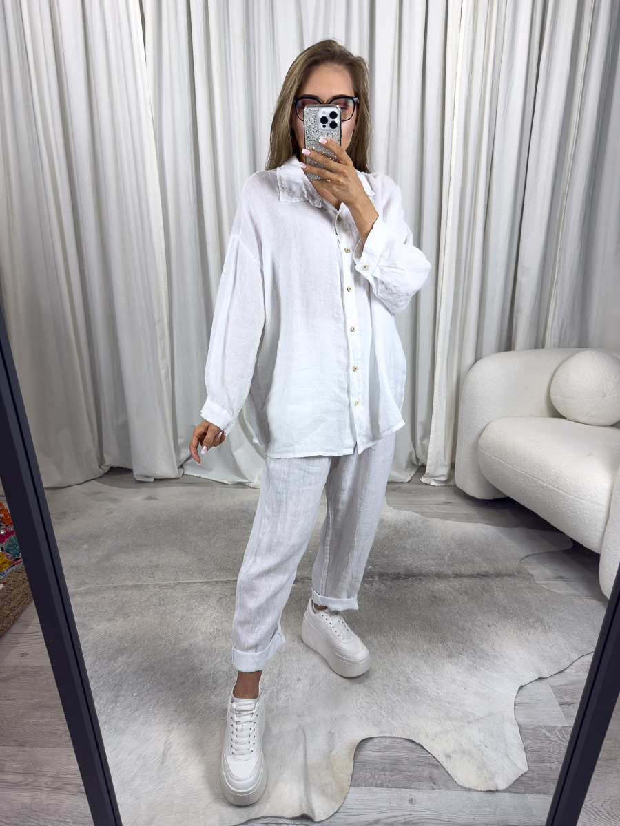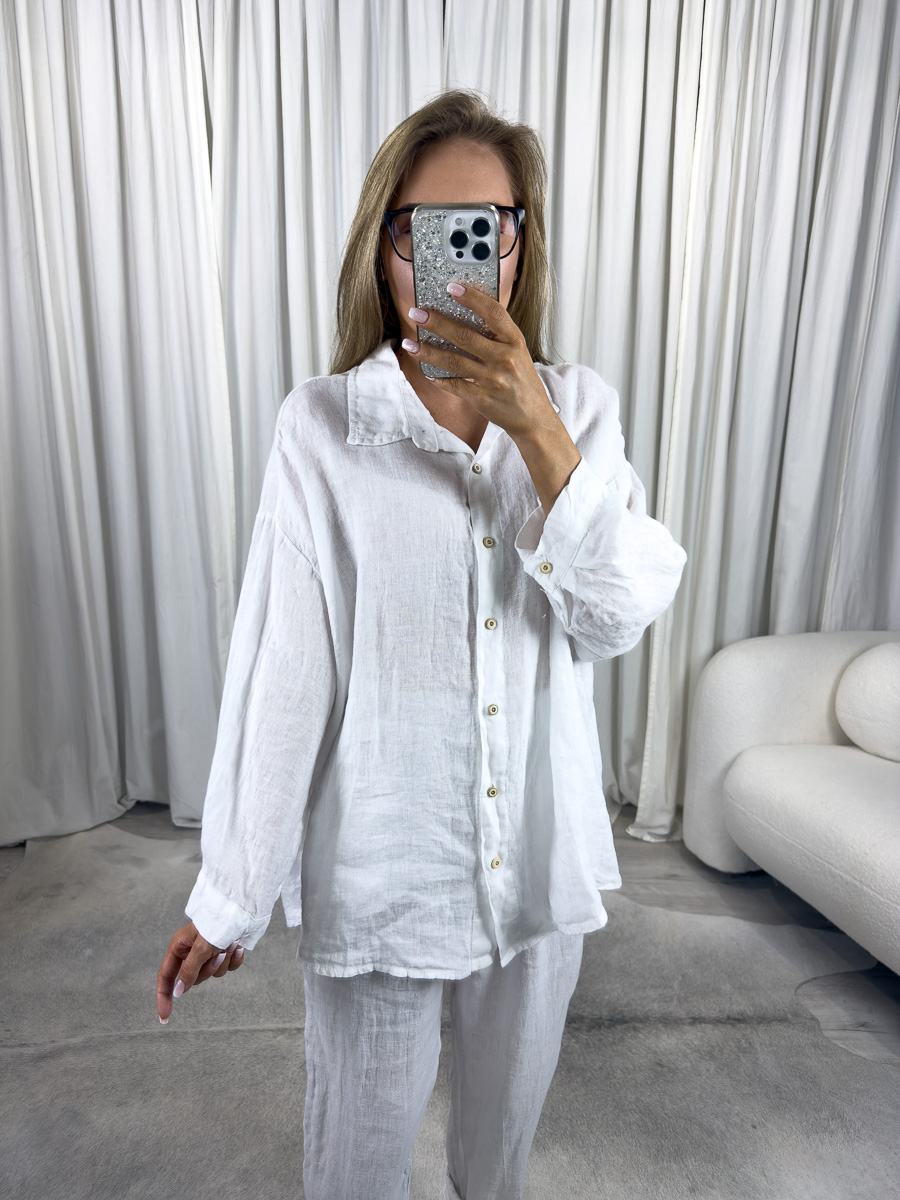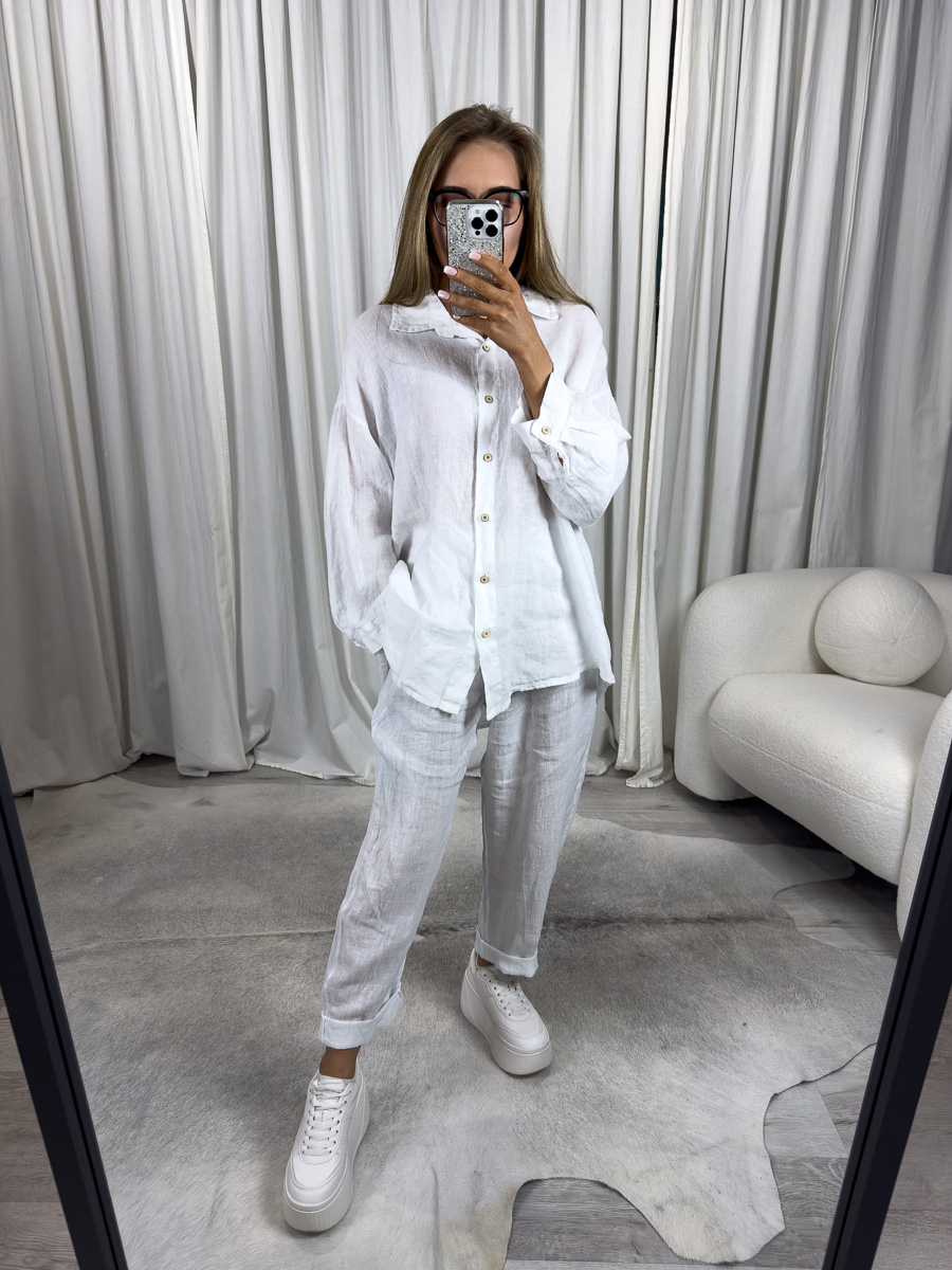 Lniana koszula Elize Wiya biała – minimalizm, który nigdy nie wychodzi z mody