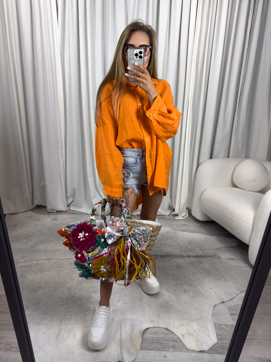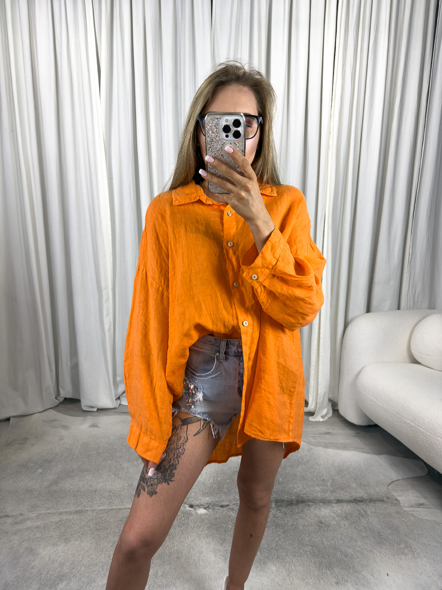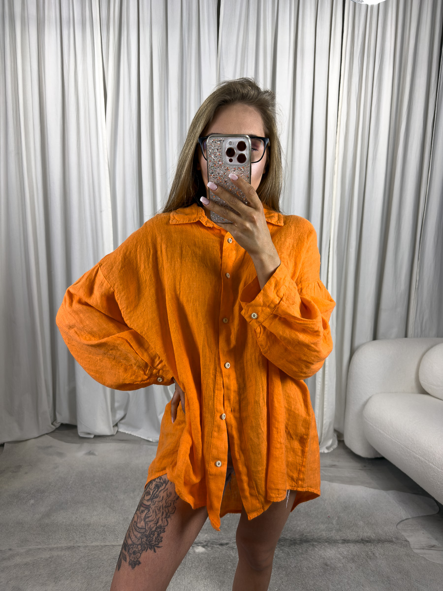Pomarańczowa lniana koszula Elize Wiya  – eksplozja energii w letnim stylu