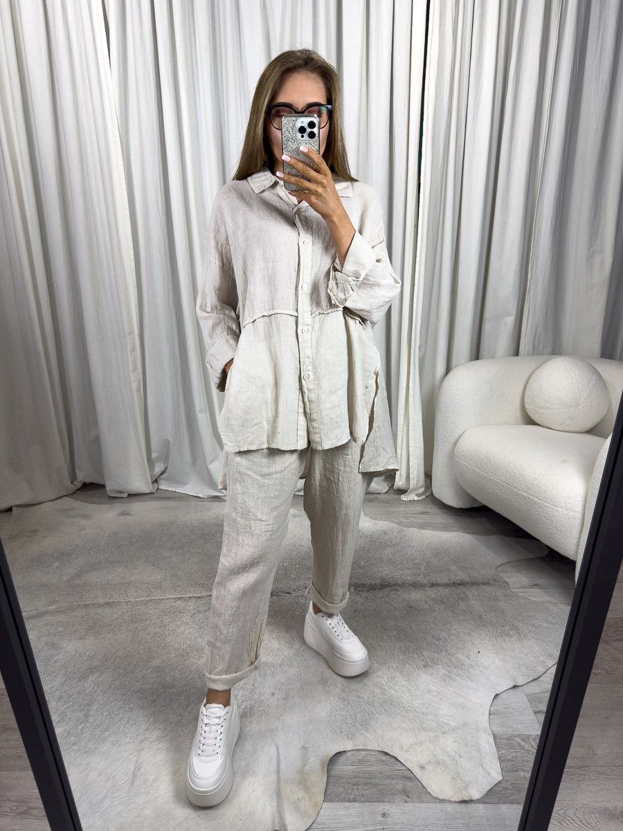 Lniana koszula Lori w beżowym kolorze to idealna baza do wielu stylizacji. W duecie z pasującymi spodniami z lnu tworzy monochromatyczny, elegancki komplet, który sprawdzi się podczas miejskich spacerów oraz urlopu. Możesz połączyć ją z szortami, kolarkami czy lekką spódnicą, dzięki czemu stworzysz bardziej codzienne zestawienia. Dodaj słomkowy kosz, espadryle i duże okulary przeciwsłoneczne – efekt gwarantowany.