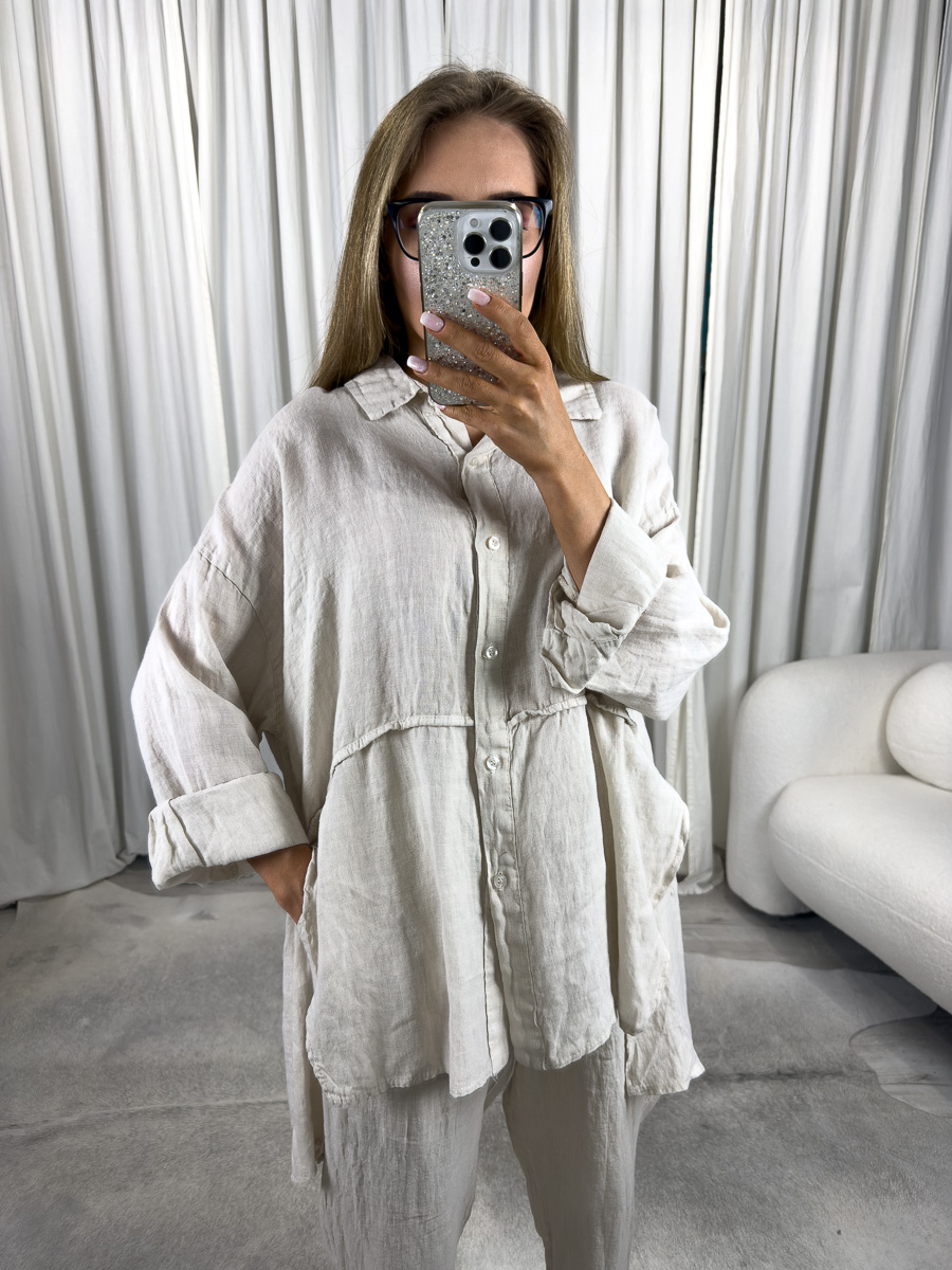 Lniana koszula Lori Wiya beżowa – naturalna elegancja w swobodnym stylu