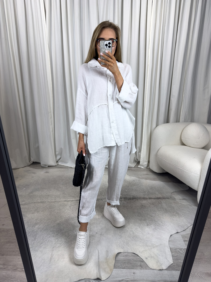 Ten model możesz nosić zarówno jako koszulę, jak i lekką narzutkę na top czy sukienkę. Świetnie wygląda w połączeniu z lnianymi spodniami do kompletu, ale też z klasycznymi jeansami i plecioną torbą. Jeśli szukasz bazy do stylizacji kapsułowej lub elementu, który sprawdzi się w podróży – Lori będzie strzałem w dziesiątkę. Zestaw ją z sandałkami lub espadrylami, a uzyskasz stylowy, lekki look na lato.
