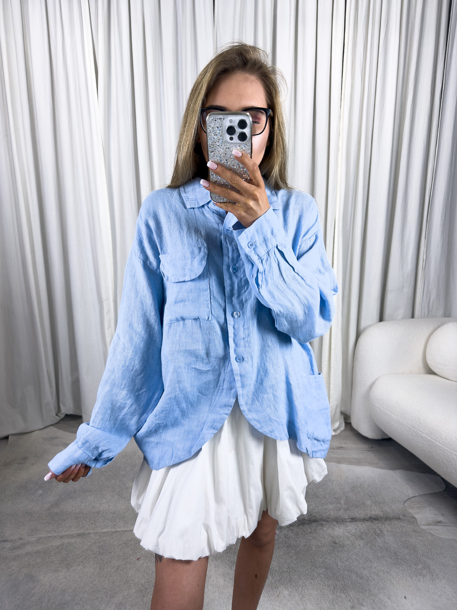Lniana koszula Stella to oversize’owy model o luźnym kroju, wykonany z wysokiej jakości lnu. Stylowy, przewiewny i idealny na co dzień – dostępny w kilku wariantach kolorystycznych.