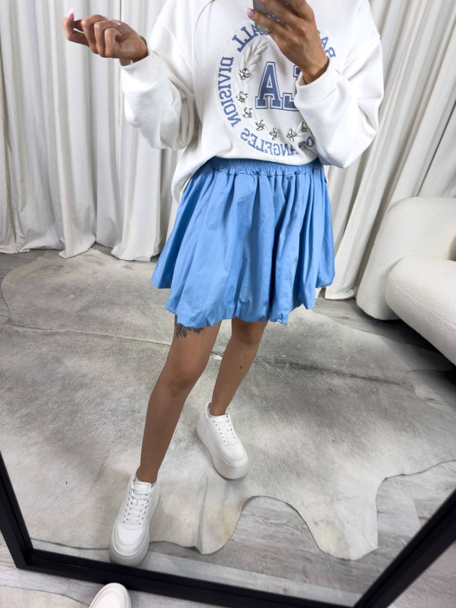 Mini spódnica z popeliny Cutie to propozycja, która łączy dziewczęcy urok z modowym charakterem miejskiego luzu. Ten fason przyciąga wzrok objętościową formą i lekkością, która doskonale wpisuje się zarówno w casualowe, jak i bardziej stylizowane zestawienia. Spódnica została uszyta z wysokiej jakości bawełnianej popeliny, dzięki czemu materiał jest miękki, przewiewny i pięknie się układa przy każdym ruchu.