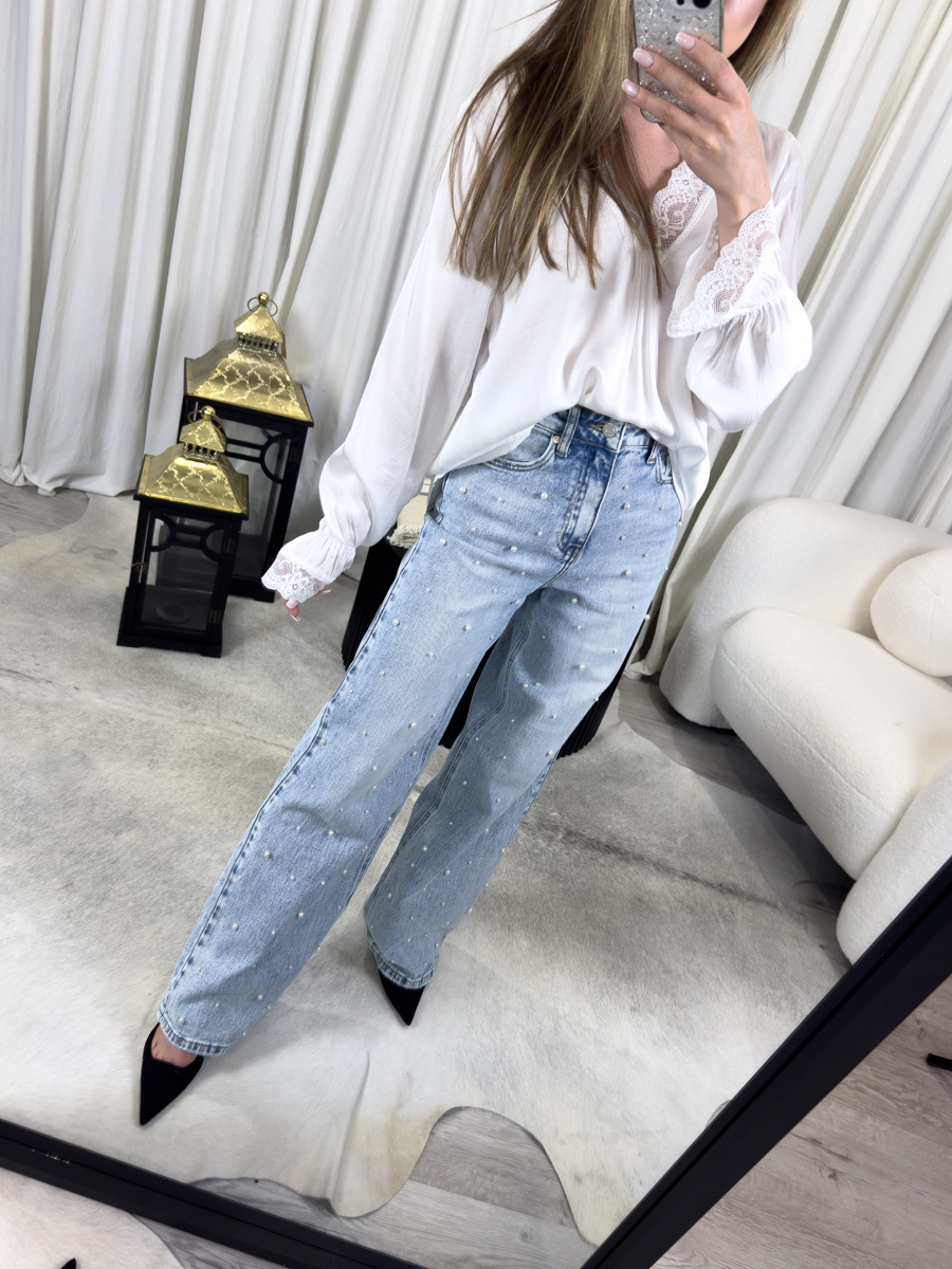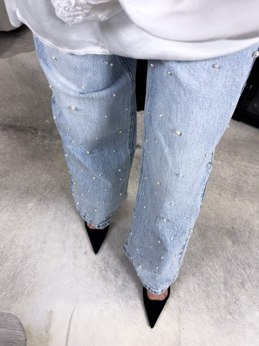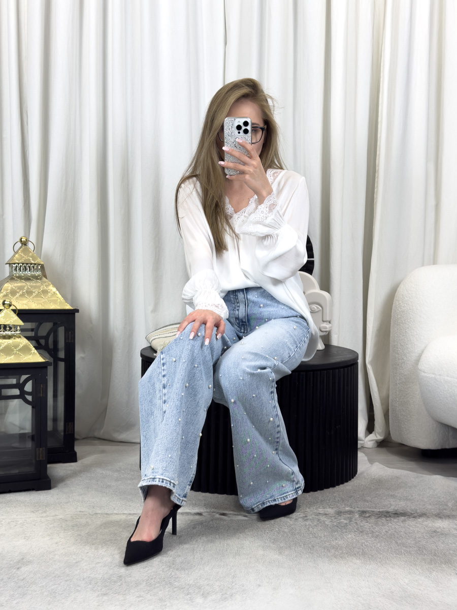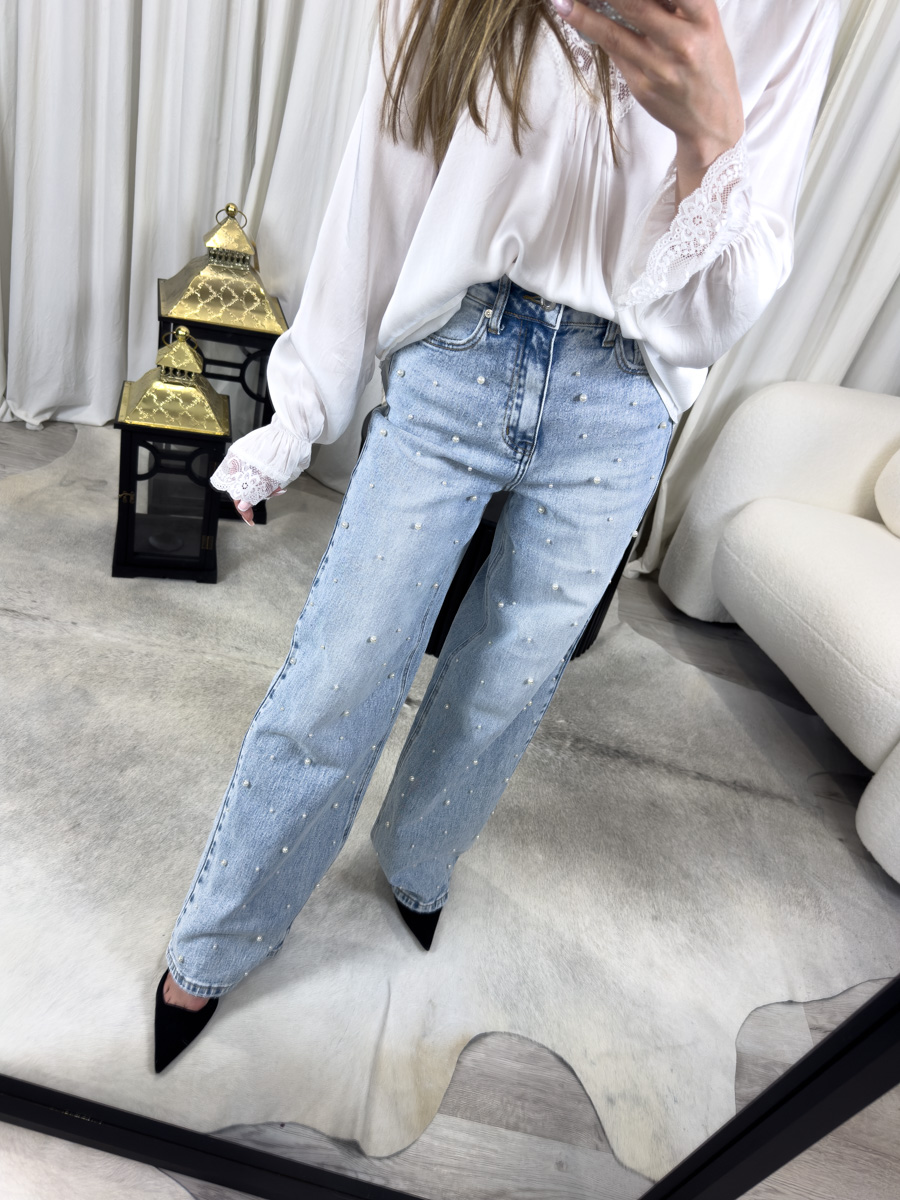 Proste jeansy Pearls Miss Bonbon – jeansy z perełkami w romantycznym wydaniu